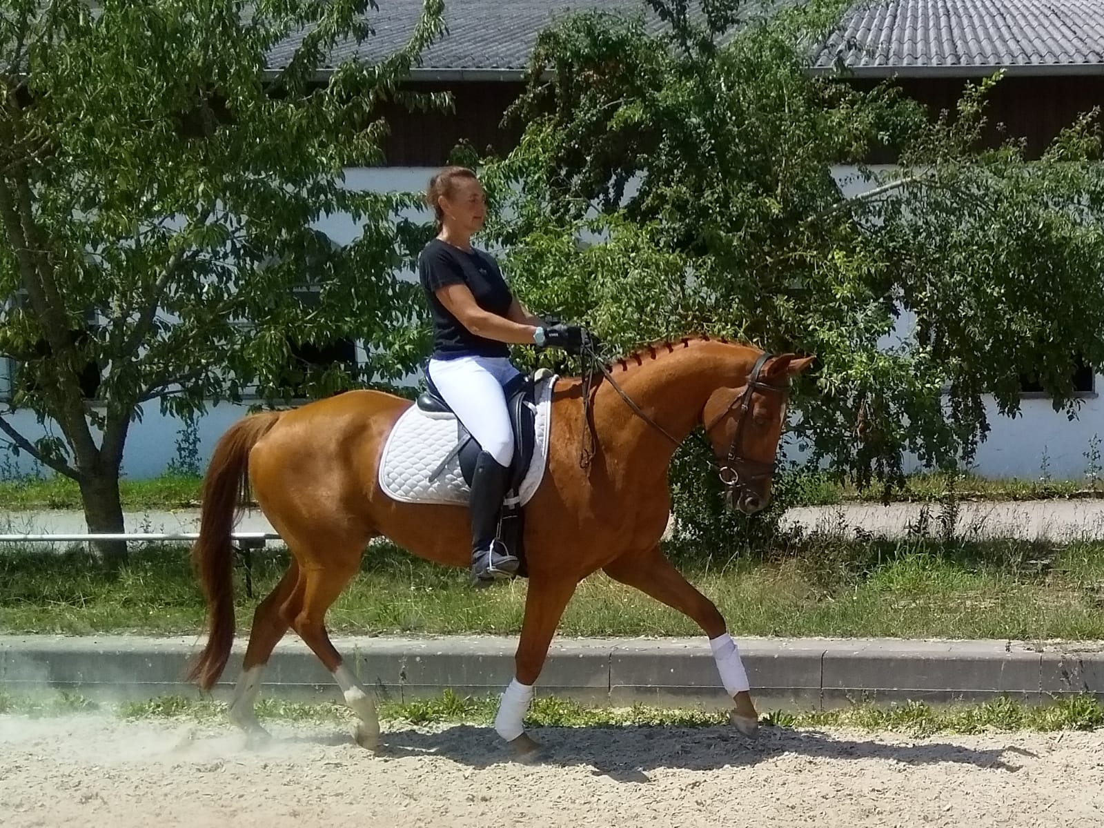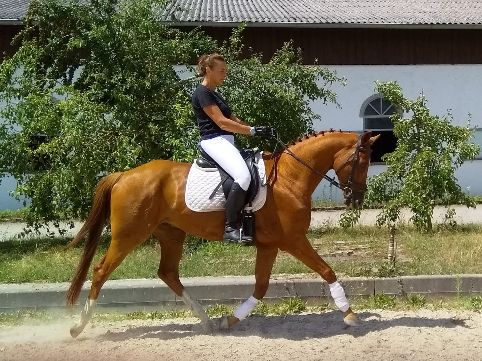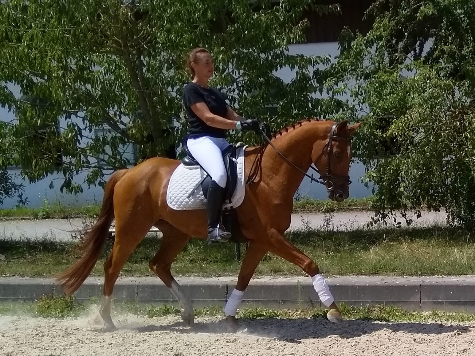 Bildschöner Dressurwallach der Vererber Descolari x Desperados x De Niro mit viel Elastizität und Traumcharakter. |